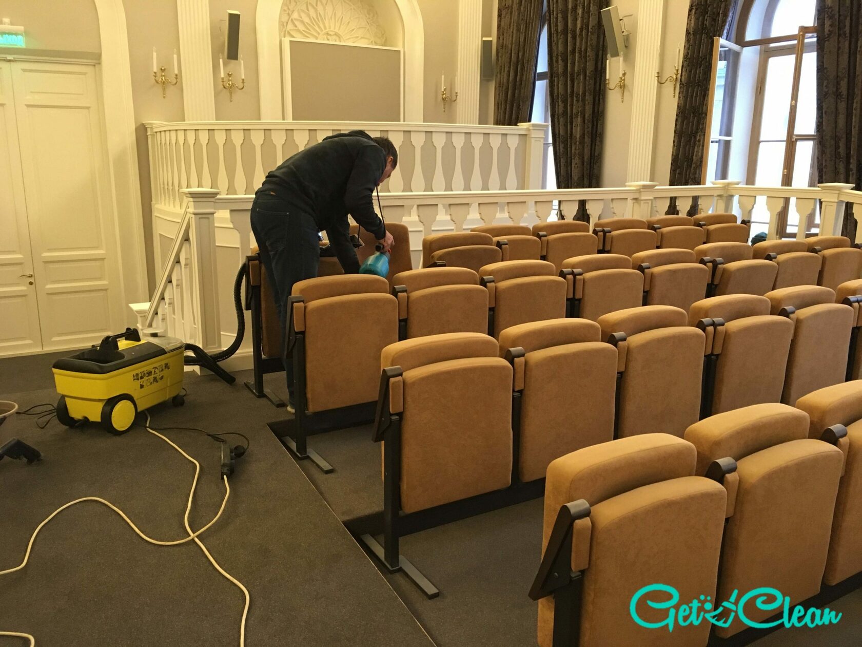 Проведены работы по мойке остекления, обеспыливанию декоративных поверхностей на стенах, пропылесосили ковровое покрытие в Гатчинском дворце после проведения косметического ремонта.